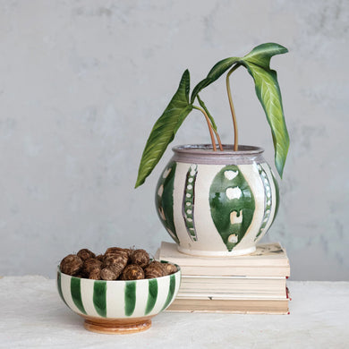 Hand-Painted Stoneware Footed Bowl