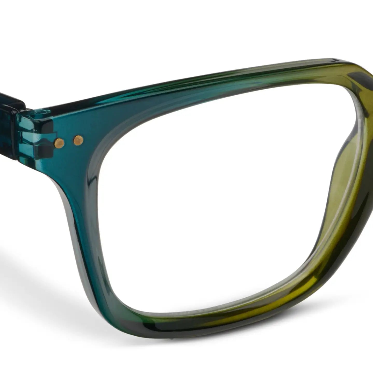 Tiki’s soft square frames are accentuated by distinct pin details at the corners, but it’s the color that truly sets them apart. Featuring a subtle, dark-to-light ombre effect, Tiki is available in two eye-catching color options: a deep, intense green and a bold, fiery red. These glasses add a dramatic pop to any ensemble.