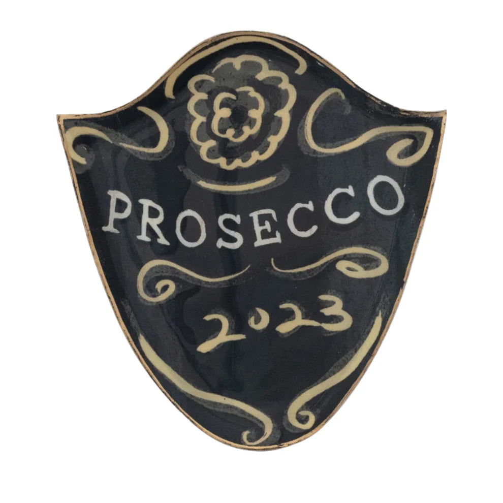 Elevate celebrations with this enameled metal tray, featuring a chic gold edge. Available in 3 styles, perfect for stylishly serving champagne and more.