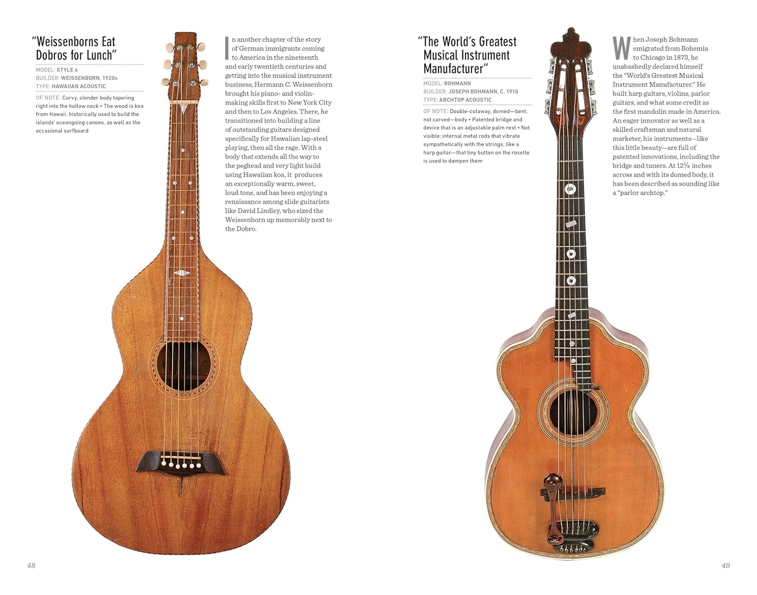 An obsessive, full-color book presented in an irresistible slipcase, Guitar features 200 instruments in stunning detail. Here are icons, like Prince’s Yellow Cloud, Willie Nelson’s “Trigger,” Muddy Water’s Thunderbird, and “Rocky,” lovingly hand-painted by its owner, George Harrison. Historic instruments—Fender’s Broadcaster, Les Paul’s “Log,” the Gibson Nick Lucas Special, the very first artist model. Hand-carved archtops, pinnacles of the luthier’s art, from John D’Angelico to Ken Parker. Stunning acoustics from a new wave of women builders, like Rosie Heydenrych of England, who’s known to use 5,000-year-old wood retrieved from a peat bog. And quirky one-of-a-kind guitars, like Linda Manzer’s Pikasso II—four necks, 42 strings, and a thousand pounds of pressure.